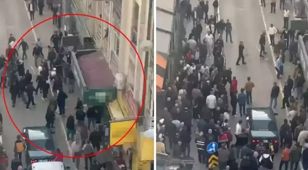 A dispute between two groups at a restaurant in Elazığ escalated into a fight. During the incident that spilled out onto the street, the parties attacked each other with tables and chairs, while one person fired a shot into the air. The moment was recorded by a mobile phone camera.