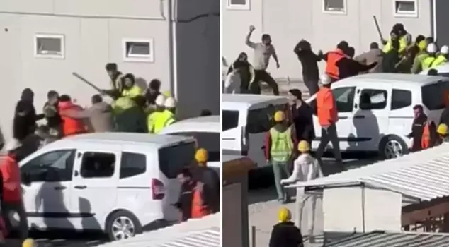 A dispute among workers at a construction site in the Yenimahalle district of Ankara escalated into a stone-throwing and stick-fighting brawl. As the workers struck each other without mercy, those moments were captured on a mobile phone camera.