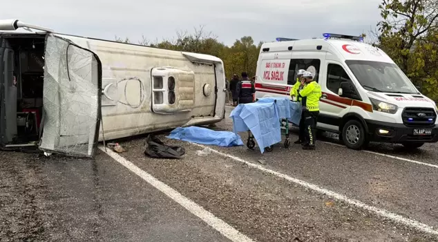 A worker's shuttle bus overturned on a slippery road in Bartın due to rain, losing control of its driver. In the accident, which was like a scene of desperation, the injured trapped in the vehicle were rescued by the efforts of the fire department. In this tragic accident, one person lost their life, and 19 others were injured.