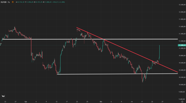 İstanbul Stock Exchange entered a rapid upward trend following the decision to reject the lawsuit regarding the CHP's 38th Ordinary Congress. With the announcement of the decision, the increase in the BIST 100 index exceeded 4%, while the rise in banking stocks surpassed 7%. The index has once again crossed the 11,000-point level.